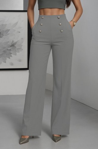 • Kadın yüksek bel önden düğmeli uzun paçaya doğru geniş ithal krep pantolon