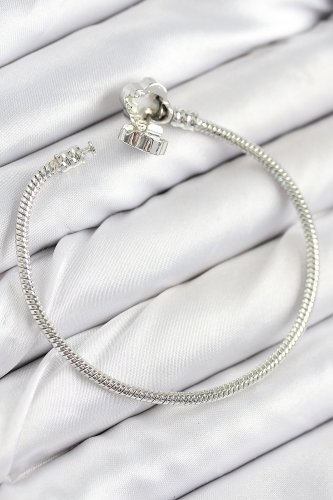 • Pirinç Charm Zirkon Taşlı Yonca Model Gümüş Renk Kadın Bileklik