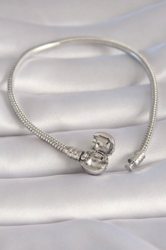 Pirinç Gümüş Renk İşleme Detay Charm Model Kadın Bileklik