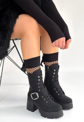 • Linma Siyah Nubuk Bağcıklı Topuklu Bot
