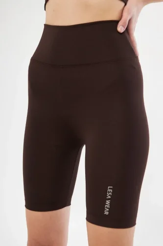• Yüksek Bel Biker Sporcu Şort Kahve