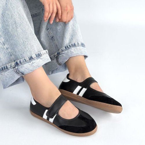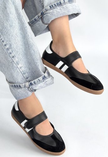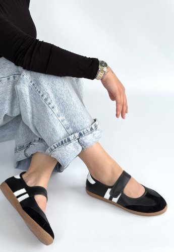 • Menja Siyah Cilt Cırt Cırtlı Babet Ayakkabı